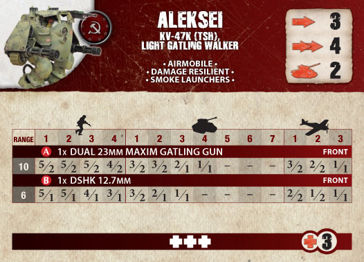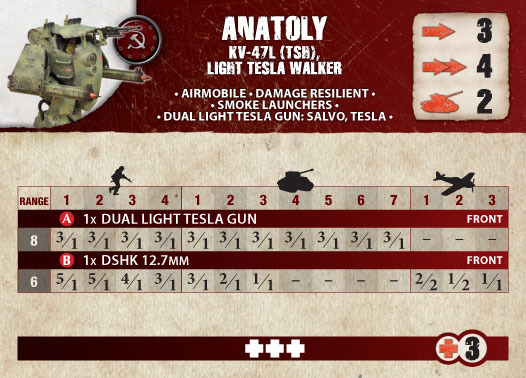 테슬라로 무장한 KV-47 워커이다. 강력한 테슬라로 적을 묵어버릴 수가 있다.