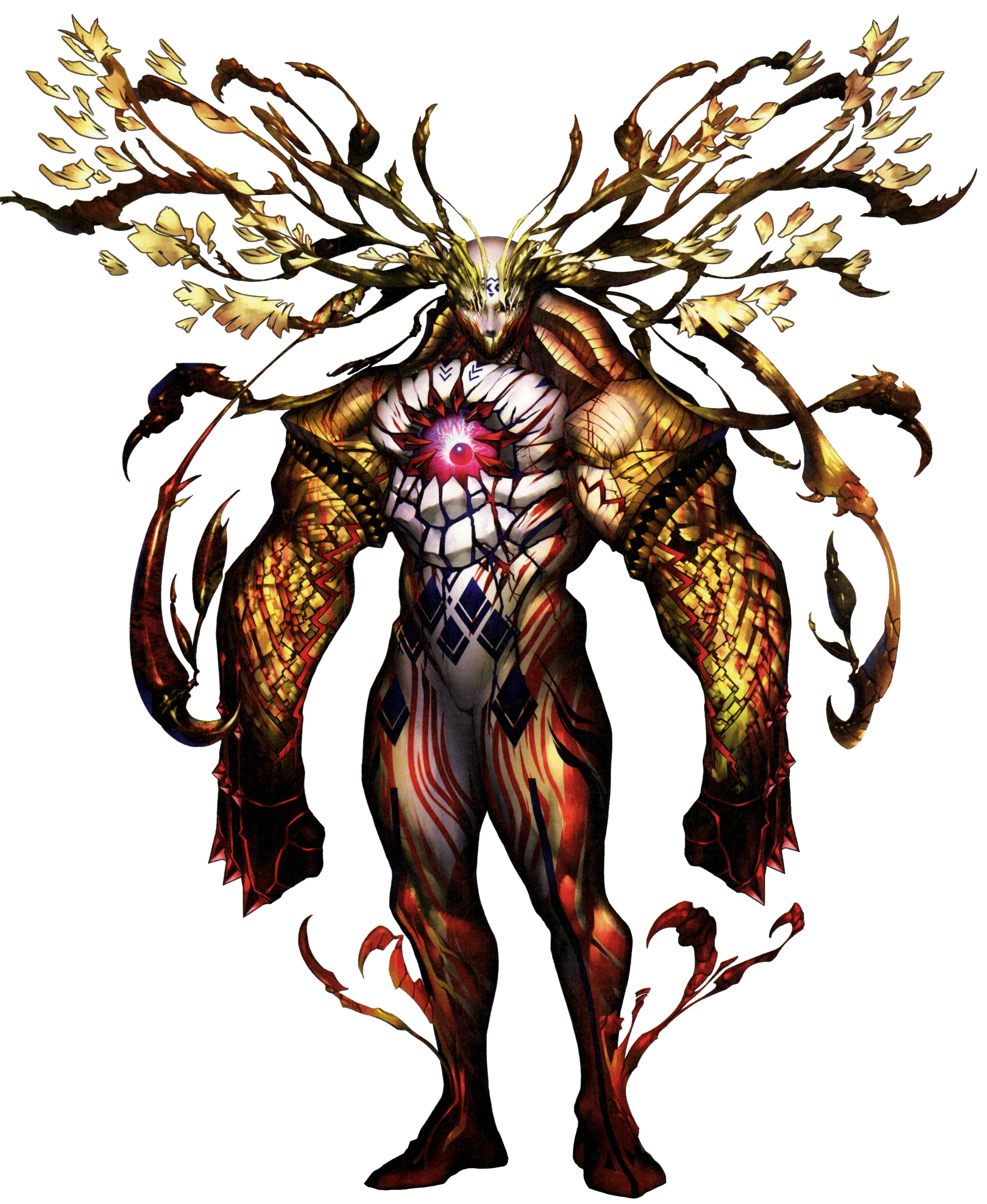 | 72주의 마신 그 집합체. 솔로몬왕 사후 그의 유해 안에 봉인된 72주의 마신들은 독자적인 사상에 눈을 떠 솔로몬의 이름을 사칭하여 (그들 입장에선 자신들이 바로 마술왕 솔로몬이다만) 인류 총 에너지화 사업을 개시했다. 원래 72주의 마신이란 (인간의) 마술 선조 솔로몬이 만들어낸 '바른 역사를 효율적으로 진행하는 시스템'이다. 그것이 솔로몬 왕과 인간들의 관계를 한탄하여, 분노하고, 솔로몬 왕이 무시해 온 '인간의 불완전성'을 극복하고자 활동하는 저주가 되었다. 그 이름은 인리소각식 게티아. 진정한 예지에 달하기 위해 만들어져, 인류사 전체를 이용하여 원초에 다다르고자 하는, 의사를 가진 마술이다. |