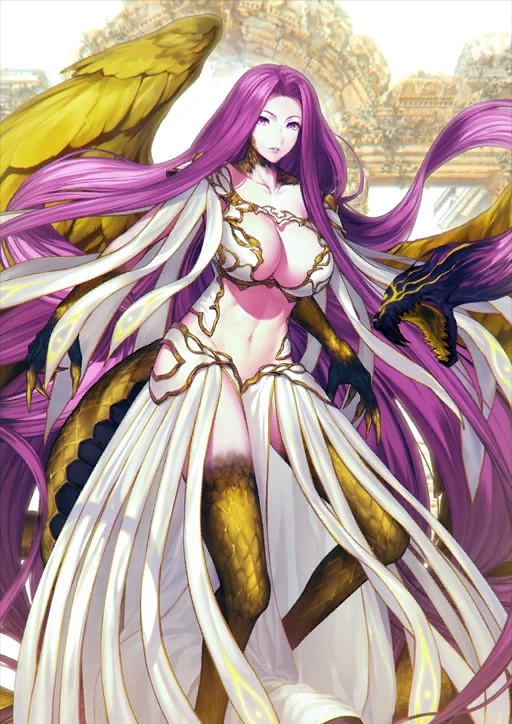 | 그리스 신화의 고르곤 세 자매의 삼녀. 본래의 진명은 메두사. 저주 받은 성장의 영락한 끝. 어떠한 요인으로 대본(오리지널)인 괴물의 성질이 크게 강조된 상태. 여신에서 완전한 마물, 괴물 "고르곤"으로 완전히 변성하기 직전 단계이며, 본래라면 서번트로 소환되지 않는다. ───이미, 마수의 여왕으로 불릴만한 존재. | |||||