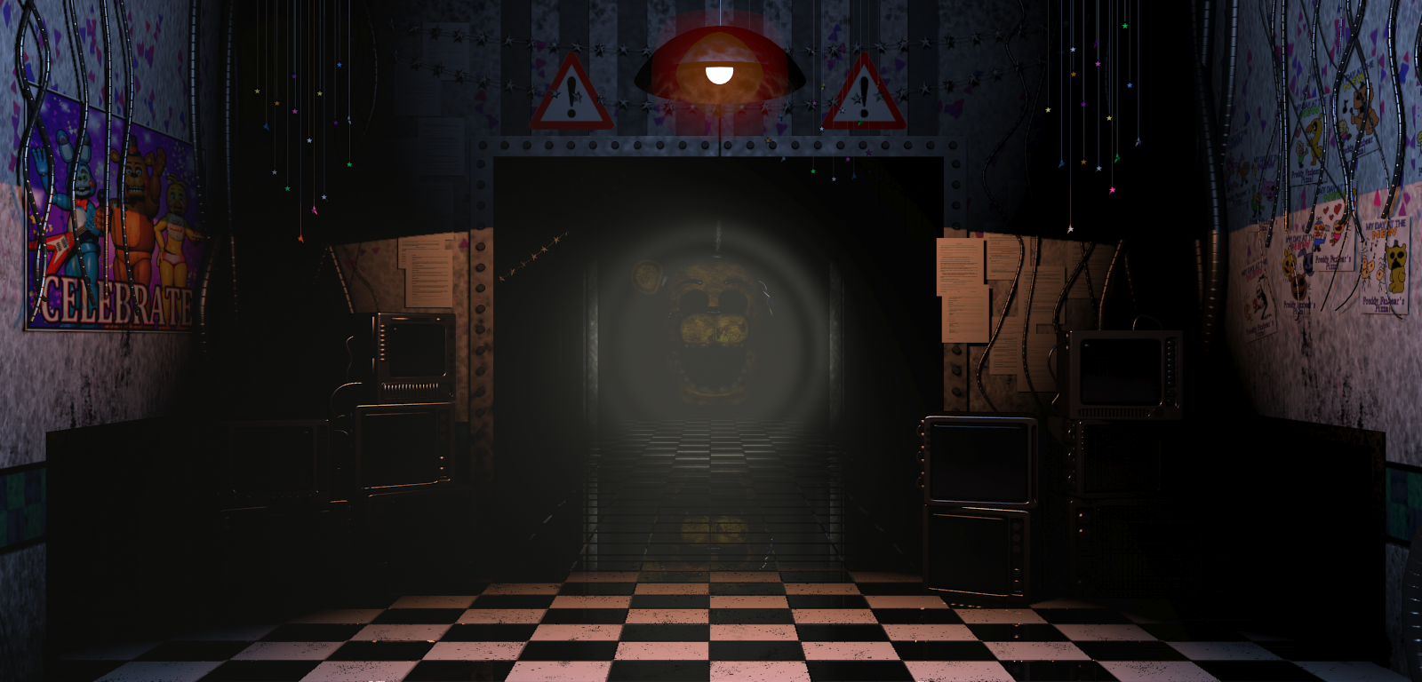 복도 쪽 환각은 그냥 단순히 손전등 불만 꺼도 막을 수 있지만, 이게 다른 애니매트로닉스들과는 정반대이기 때문에 문제. 보통 복도를 감시하기 위해 손전등을 계속 키는데, 환각이 떠도 무의식중에 계속 불을 껐다 키다간 골든 프레디의 머리통이 날아드는 걸 볼 수있다.