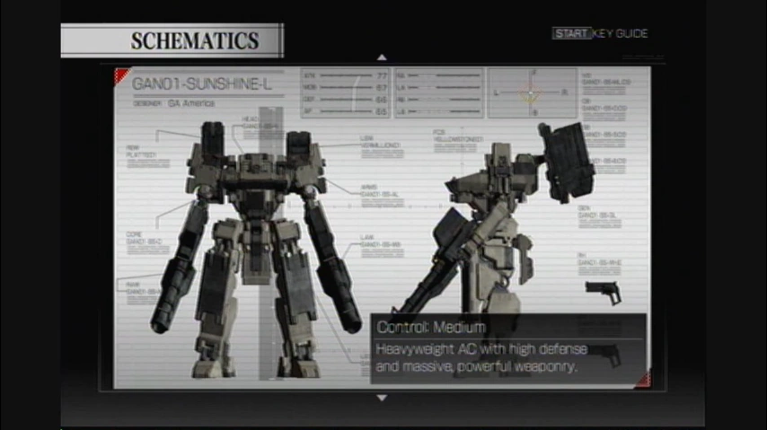 특징은 두꺼운 장갑에 의한 실탄 방어력. 장갑만 놓고 보면 표준기인지 중장인지 알 수 없을 정도의 높은 방어력을 가지고 있으며, GA사 특유의 단발 고화력 실탄장비에 최적화된 성능을 지니고 있다. 말 그대로 공격력과 방어력의 양립. 물론 AP도 엄청나게 높아 초심자가 쓰기도 편한 기체다. 초기 설계도만으로 보자면 내부 부스터도 중장형 기준이라 기동력도 나쁘지만은 않다. 단점은 Y01-TELLUS와는 정반대로 EN 방어력과 사격보정시간 및 조준정도.