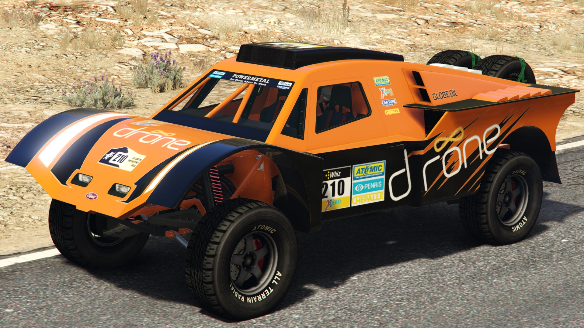 사막을 가로지르는 랠리 레이스에 나가고 싶은데 평범한 사륜구동 차량으로는 돈자랑이 안돼서 고민입니까? 그럼 이 차가 딱입니다. 반은 레이스용이고 반은 오프로드용이며 온몸에서 속물 티가 나는 대형 서스펜션 차량입니다. 티타늄으로 보강된 두꺼운 타이어로 자연 보호 구역이든 서민들의 밭이든 깔아뭉개며 지나가십시오. 전부 자연의 섭리입니다.