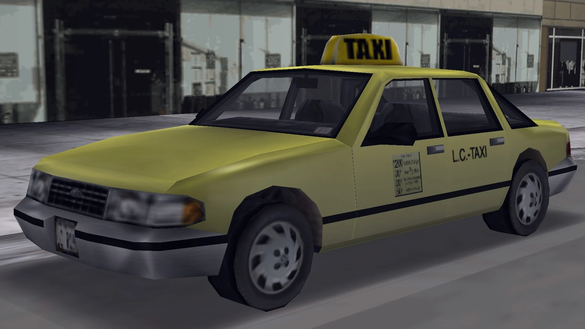 대표적인 영업용 차량인 이상 GTA의 모든 시리즈에 개근한 차량으로, 거의 대부분 경찰차와 같은 차량을 쓴다. 고로 성능도 경찰차와 동일하다. 다만 최고속도는 택시보단 경찰차가 더 빠르다.