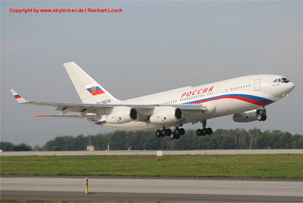 아에로플로트의 일류신 IL-96-300. 짧고 통통하며 측면 출입문이 3개다. 엔진 리버스 브레이크가 미닫이처럼 열린다. 조종석 측면 유리 귀퉁이 부분은 에어버스 기종들보다 훨씬 심하게 접혀 있다.