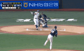 - 8회말 지석훈 좌익수 왼쪽 2루타 (1타점) 김성욱 타석 폭투 (1득점) / 두산 1:2 NC