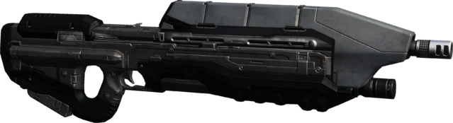 게임 세계관 기준으로 만들어진지 600년은 된(!) 7.62X51mm NATO 탄약을 사용하는 자동소총. 600년 동안 같은 탄약을 쓰다니 참 어지간히도 무기 개발을 안한 모양이다. 이제는 돌격소총으로 사용한다는게 함정 동일하게 26세기인 옆동네는 50구경 강철 스파이크 탄을 탄속은 극초음속에 초당 30발로 쏴갈기는 물건이 돌격소총인데... 분당 발사속도는 굉장히 빠르지만...더이상의 자세한 설명은 생략한다. 자체에 컴퓨터가 내장되어 있어 목표물을 조준하는 능력을 향상시키는 것은 물론 장탄수 관리나 게임상에선 헤일로를 중력으로 잡고있는 행성만을 가리켜 왜 있는지 모를 나침반등의 보조기능이 내장되어 있다.