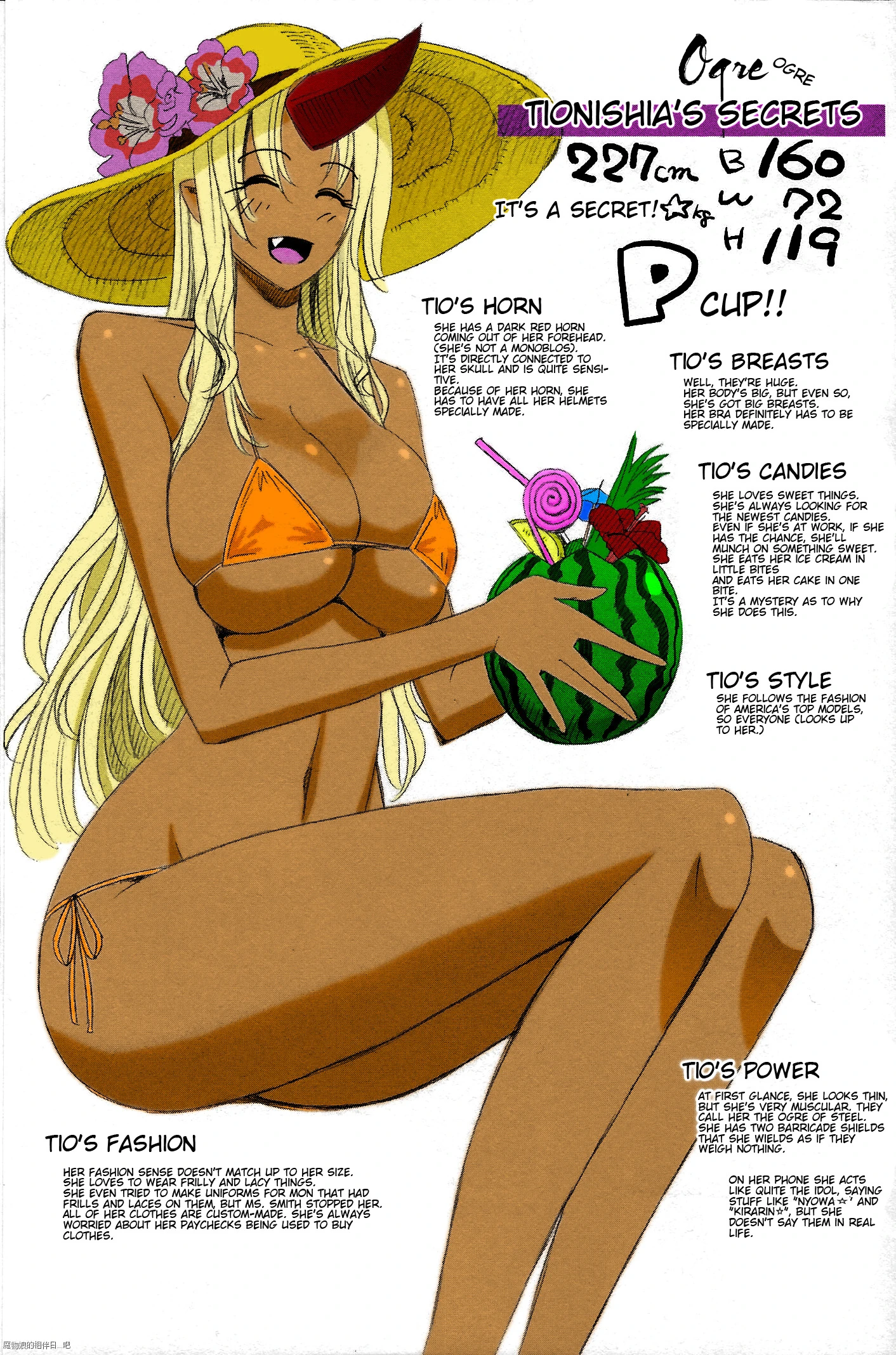 티오니시아를 자세히 보면 그래도 여타의 몬스터 아가씨들에 비해 상당히 사람 같이 생겼다. 딴 몬스터 아가씨들은 몸이 심하게 다르게 생기거나[19] 뭔가 문제가 있게 생겼지만 티오니시아는 머리에 뿔이 난 걸 빼면 그냥 싸이즈만 다를 뿐이다.