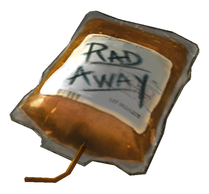 현재 대전쟁으로 인해 ICBM을 곳곳에 두들겨맞아 방사능 지옥인 황무지의 막장 사정을 감안하면 라드-X와 함께 선택이 아닌 필수품이나 다름 없는 존재. 그렇다고는 해도 이미 대전쟁으로부터 200여년이나 지난 상황인데도 정말 끝없이 발견되는 신기한 물건이기도 하다. 구급상자를 뒤지면 심심찮게 나오며 황무지 곳곳에 존재하는 의사양반들도 자주 파는 품목이다. 대전쟁 전부터 사람들이 방사능 음료수를 빨고다니고, 폭발하면 방사능을 내뿜는 자동차를 타고 다녔으니 저런 물건이 안 나올래야 안 나올 수 없던 거 같다. 하지만 그걸 감안해도 여전히 나오는 양이 필요 이상으로 넘쳐 흐르는데, 어쩌면 제조 기술 같은게 풀려서 그럴지도 모른다.