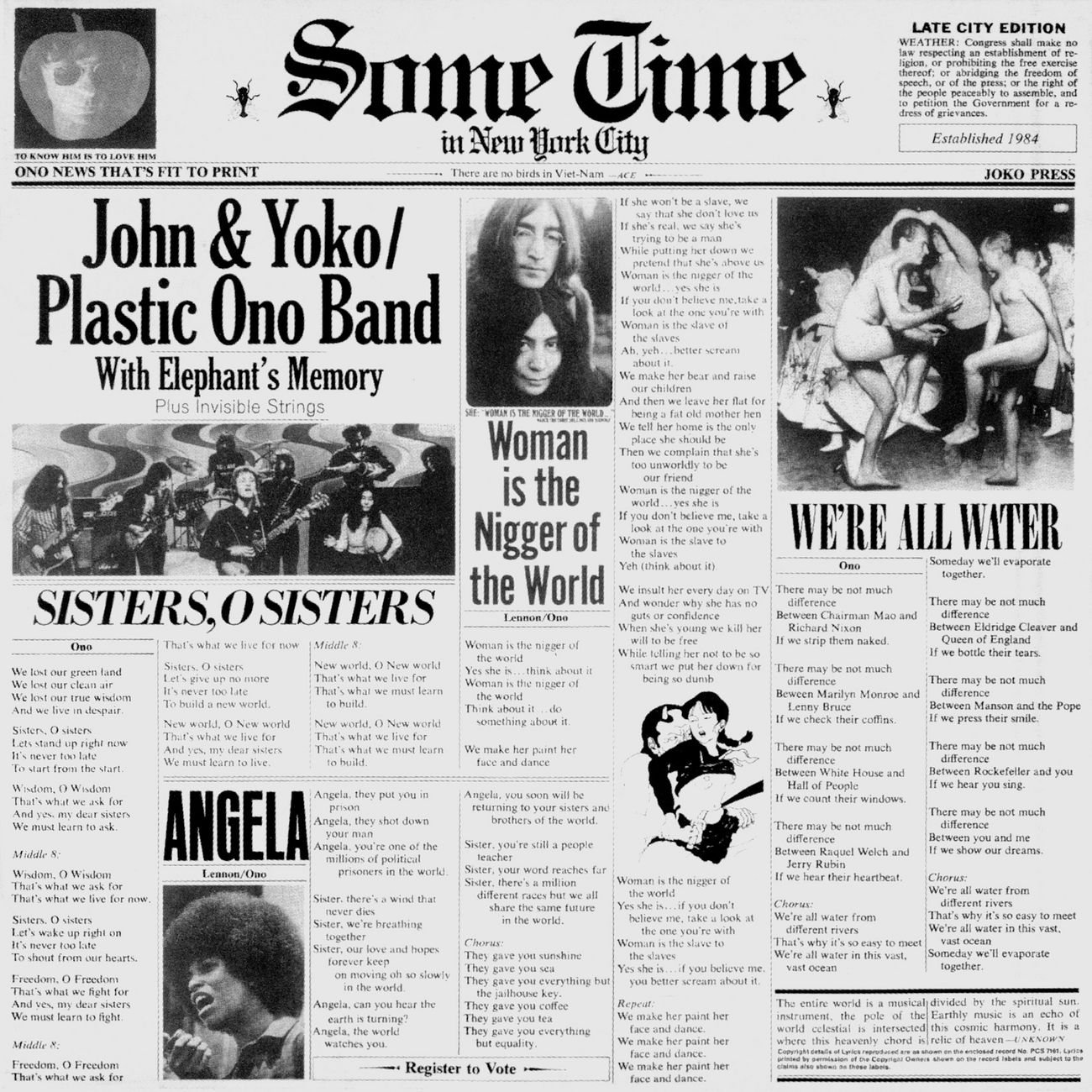 - 세계 최초로 여성인권을 다룬 곡이다. 존은 이 사실을 자랑스러워했다고 한다. 근데 Nigger라는 단어 때문에 상당히 논란이 많았었다. 미국의 토크쇼인 딕 카베트쇼 진행자인 딕 카베트는 레논이 출연하는 날 미리 시청자에게 불괘감을 줄 수 있다고 경고할 정도였다. 출연 영상
