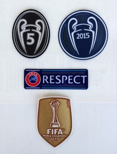 - ↑ 참고로 배지에 통산 우승 횟수를 숫자로 적어서 부착한다. 사진 왼쪽 상단의 배지의 5라는 숫자는 바르셀로나의 챔스 우승 횟수이며, 오른쪽 상단은 바르셀로나가 디펜딩 챔피언 자격으로 다는 우승 패치이다. UEFA RESPECT 는 챔스 참가팀 모두가 부착하는 공용 패치이다. 맨 아래는 FIFA 클럽 월드컵 우승팀이 부착하는 우승 패치,
